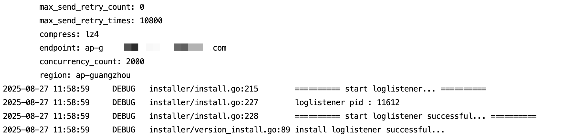 ./loglistener_operator install -s ${secret_id} -k ${secret_key} -r ${region} --url https://xxx.tar.gz