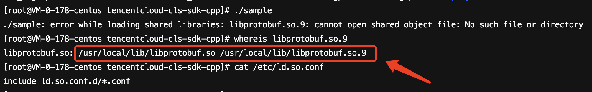 ./sample and Getting an Error./sample: error while loading shared libraries: libprotobuf.so.9: cannot open shared object file: No such file or directory