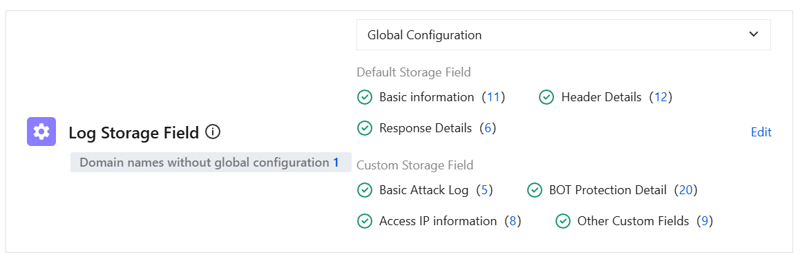 Log Storage Field: Click Edit to select whether to save BOT information, request content Request Body, and custom Headers.