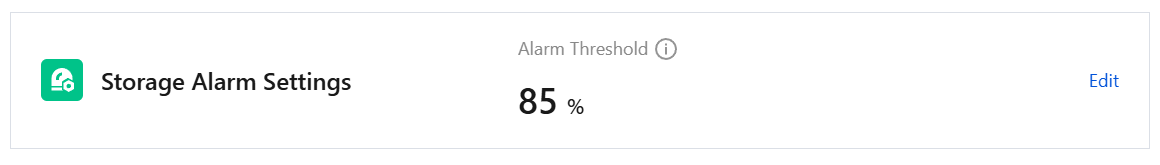 Storage Alarm Settings: Click Edit to set the notification threshold percentage. When the log storage reaches the threshold percentage you set, alarm notifications will be triggered via SMS, in-site messages, emails, WeChat, and other channels for the current account.