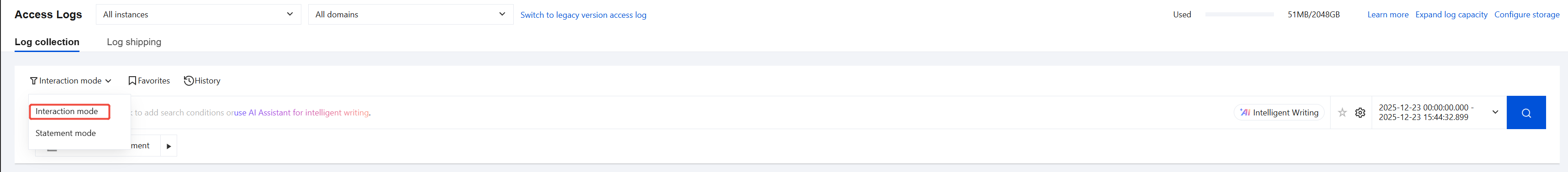 3.1.1 On the Access logs > Log collection page, select Interactive mode.