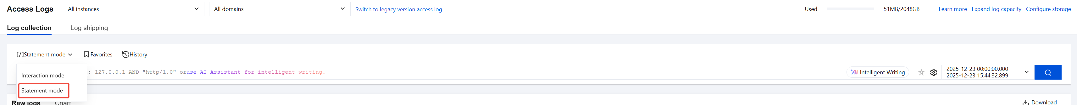3.1.4 On the access logs > Log collection page, choose statement mode.