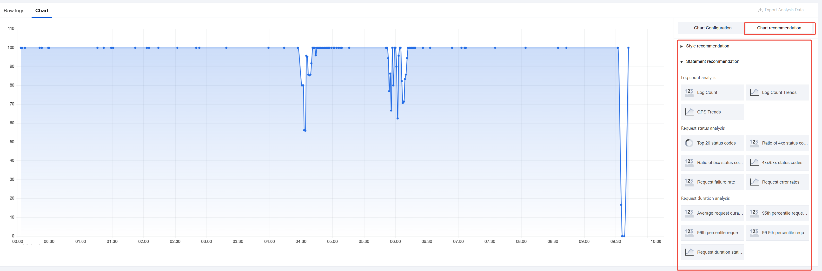 Interactive mode: Generate charts by adding statistical statements. Click Add Statistical Statement, configure specific metrics, dimensions, sorting methods, and statistical approaches; set the maximum number of returned results, and click Confirm.