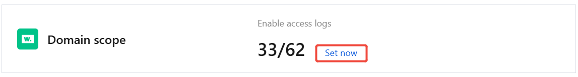 Valid Domain Scope: allows you to view the number of domains for which access logs are enabled. You can click Set now to enable or disable the access log switch for individual domains in the domain list.