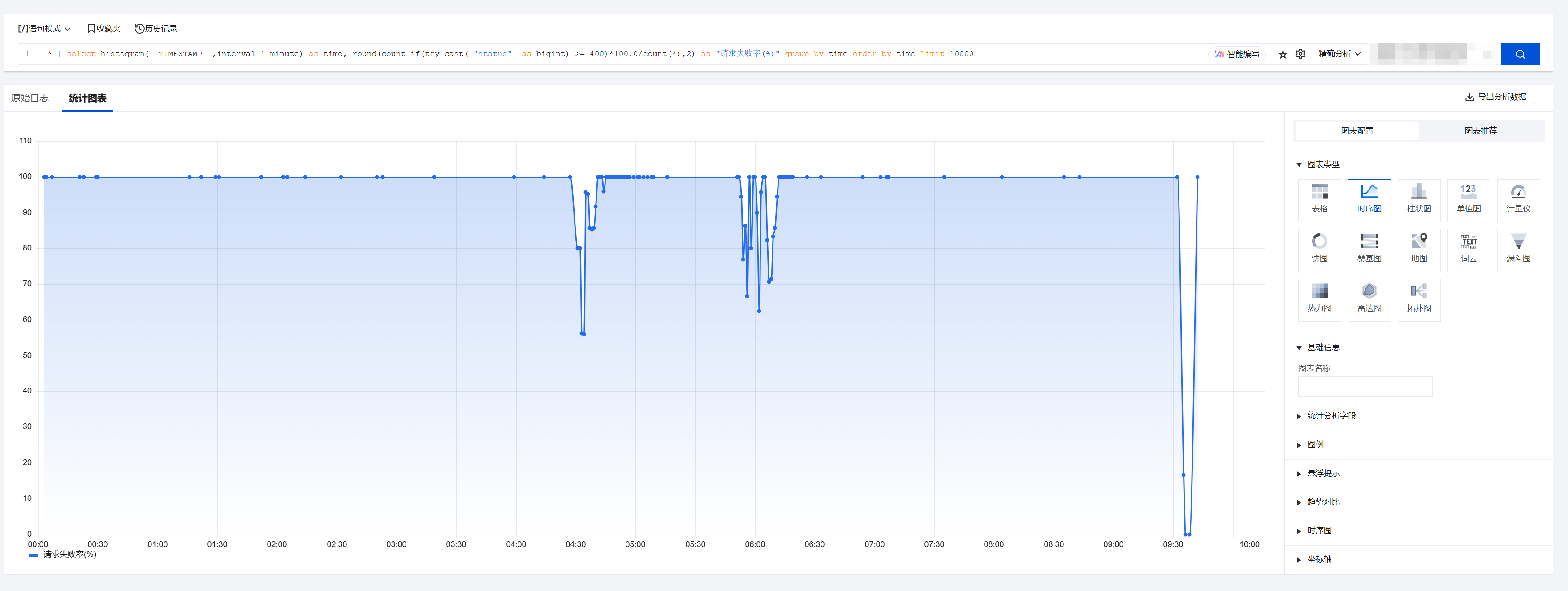 2. 在攻击日志页面,单击日志服务 > 统计图表