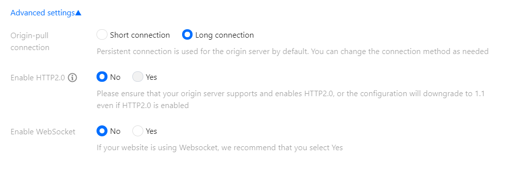 Enable WebSocket: If your website uses WebSocket, we recommend you select Yes.