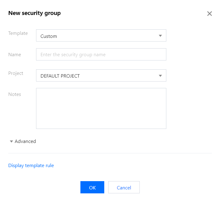 1. Log in to the CVM console and click Security Group on the left sidebar. 2. Click Create. On the pop-page, select Custom for the template, enter the security group name (such as my-security-group) and remarks, and click OK.
