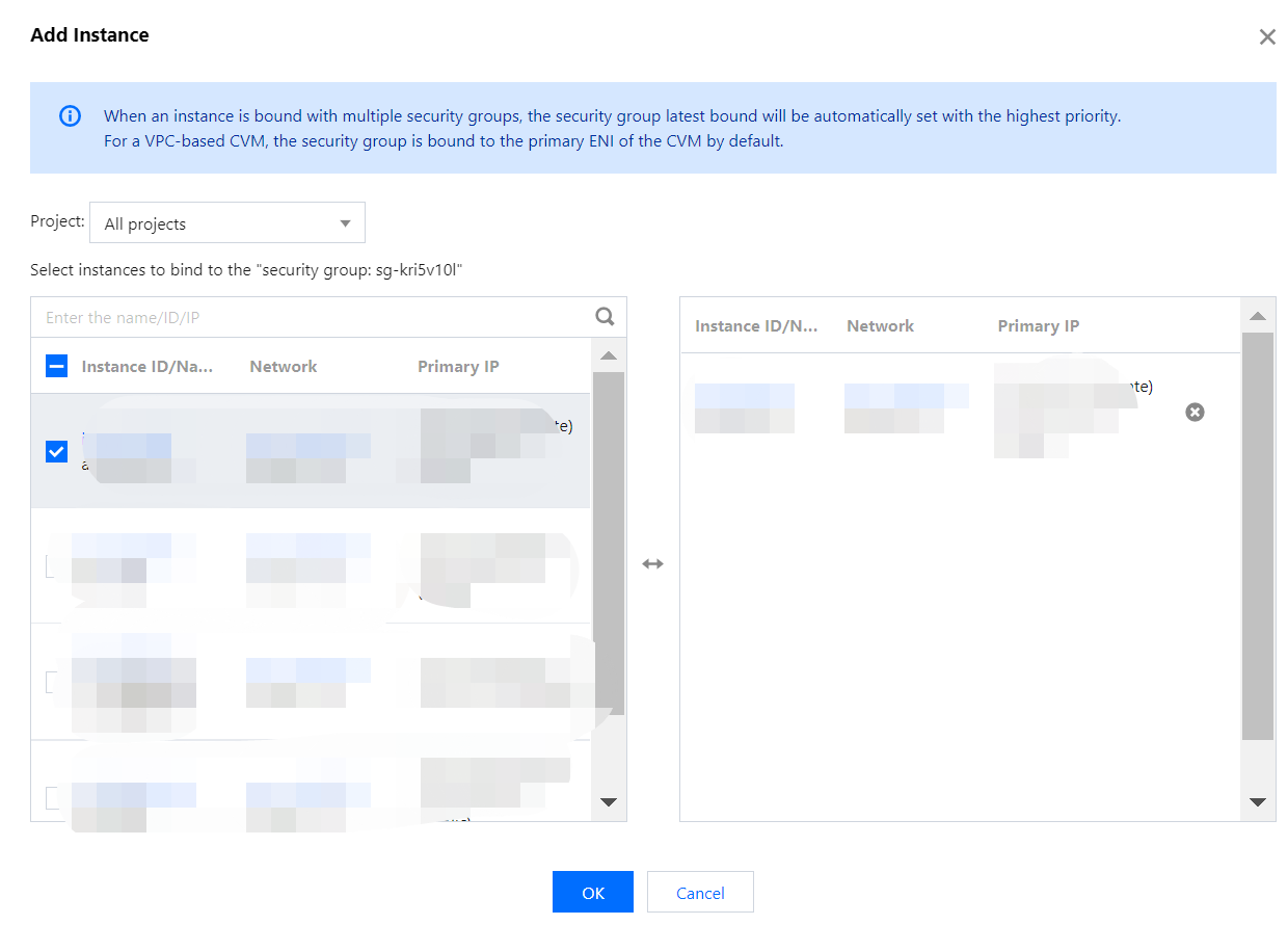 7. In the pop-up window, select the CVM instance to be bound to and click OK.