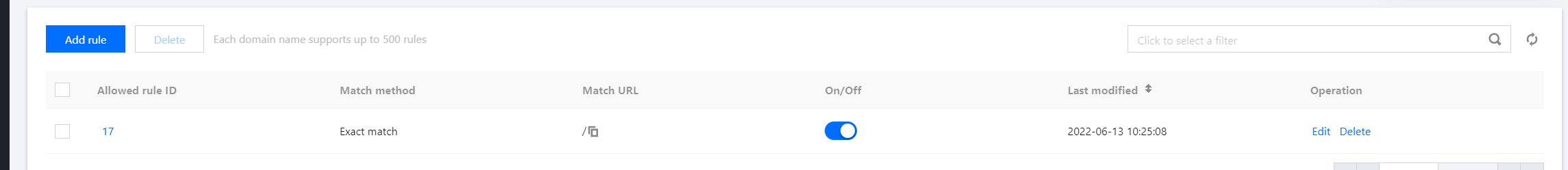 Operation: It allows you to edit or delete a rule.