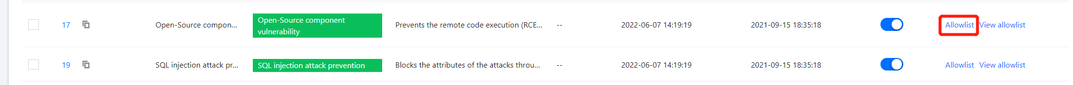 6. After the allowlist is configured, click View allowlist to view the allowed rules and perform relevant operations.