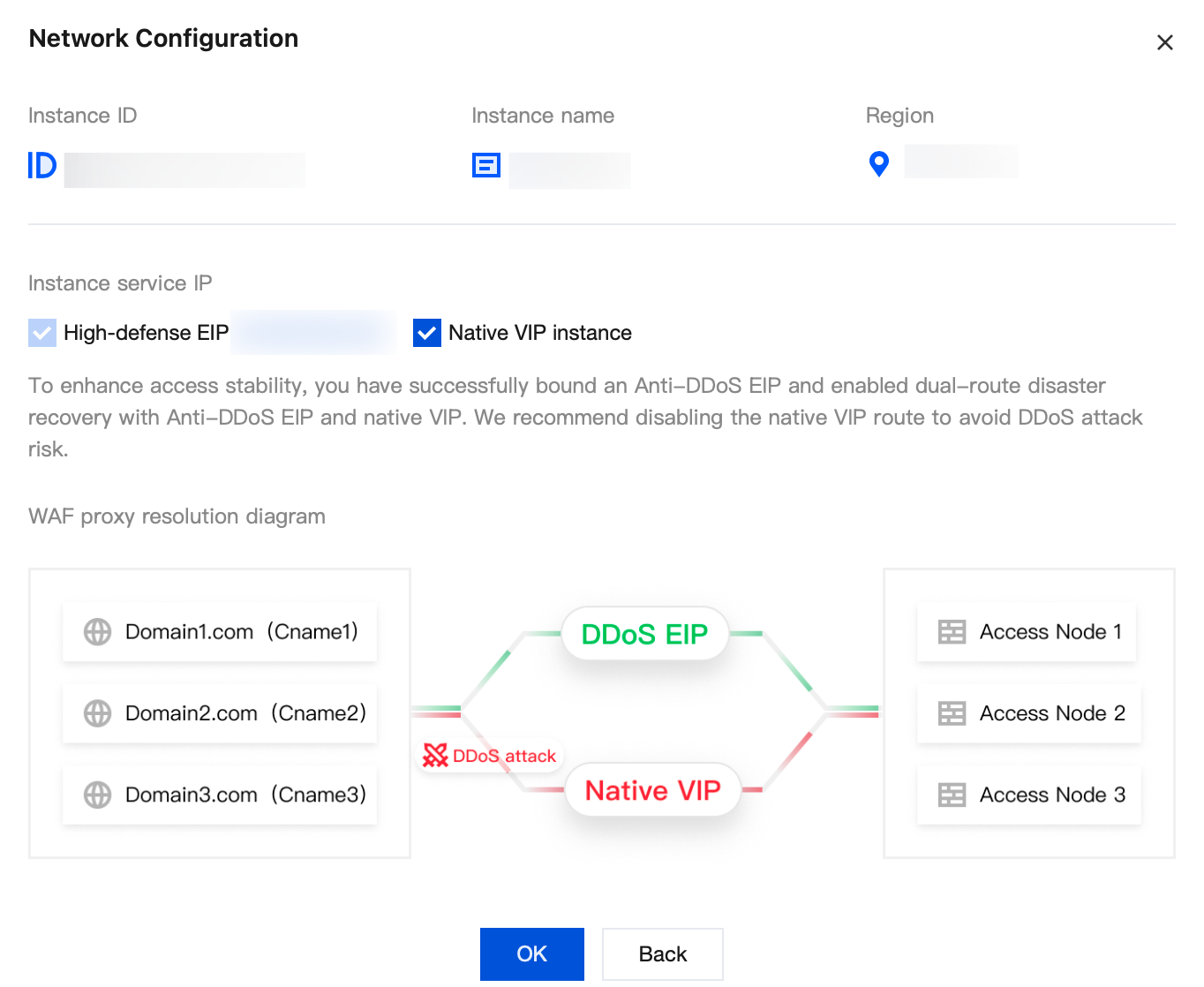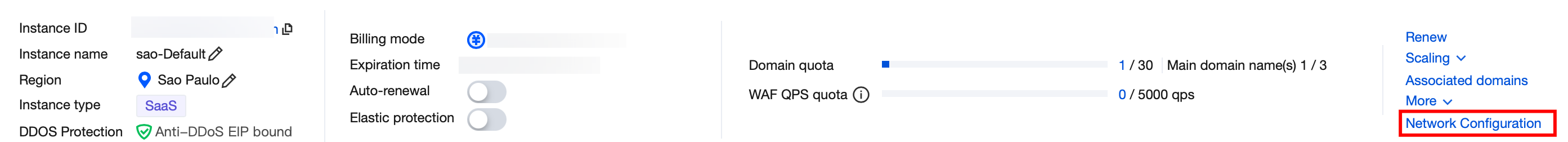 1. For instances with DDoS protection, users can configure network.
