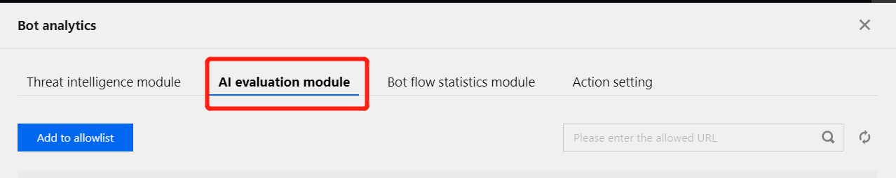 5. On the AI policy page, you can add URLs to the allowlist, so that core business will not be blocked due to frequent access to core business/callback business. You can also add certain URLs to the allowlist so that they will not be blocked by mistake.