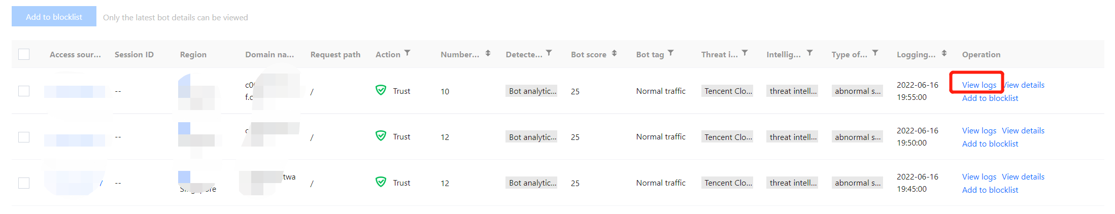 To view access logs, you need to subscribe to the access logging service. View details: Click View details to view the feature details of a bot.