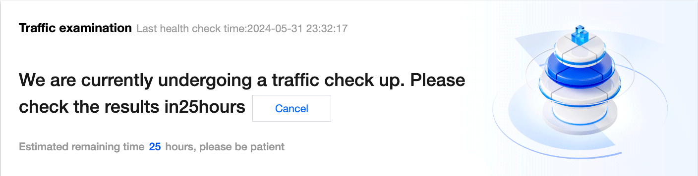2. After the check is initiated, you need to wait for 24 hours to obtain the results. During the check process, you can click Cancel to terminate the check task.