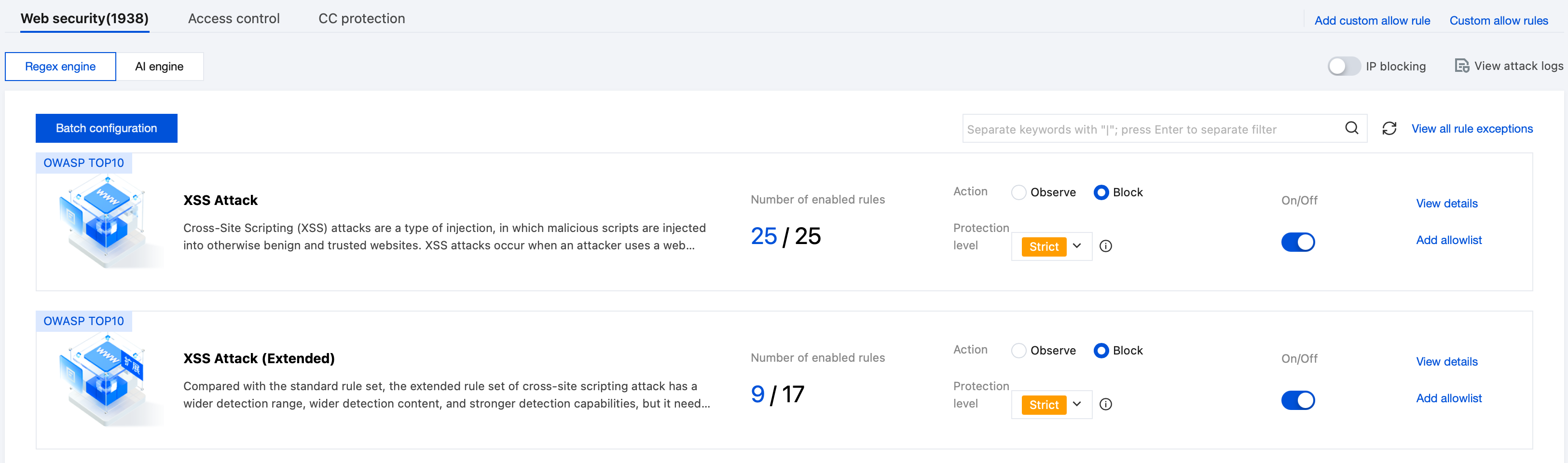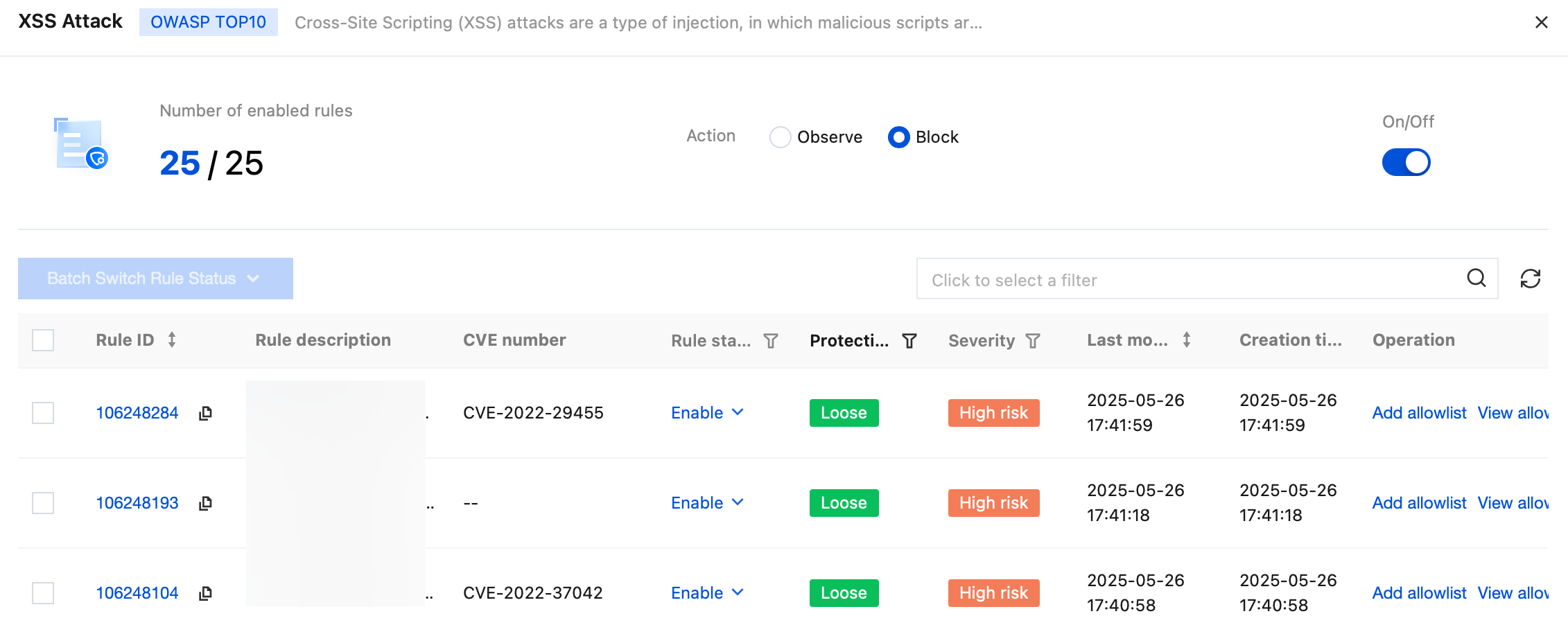 Bad Robot | Bad Robot detection is mainly used to detect malicious tools such as web scanners and script batch acquisition tools. |