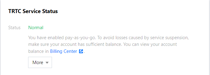 Log in to the TRTC console, click Application Management, find the application you created, and click Application Info to view the service status.