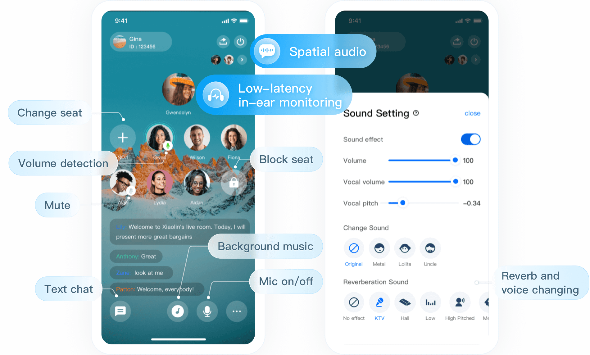 TUIVoiceRoom is an open-source audio/video UI component. After integrating it into your project, you can make your application support the group audio chat scenario simply by writing a few lines of code. It also supports the iOS platform. Its basic features are as shown below: