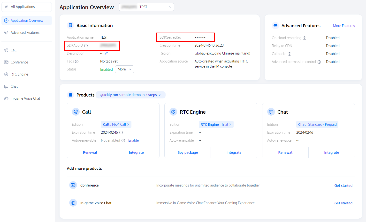 SDKAppID information is as shown in the figure below: