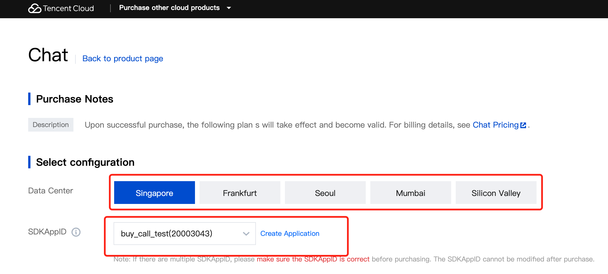 Currently, TRTC purchase page only supports purchasing Prepaid applications in the Chat Singapore Data Center. Other types of application purchase methods are as follows: