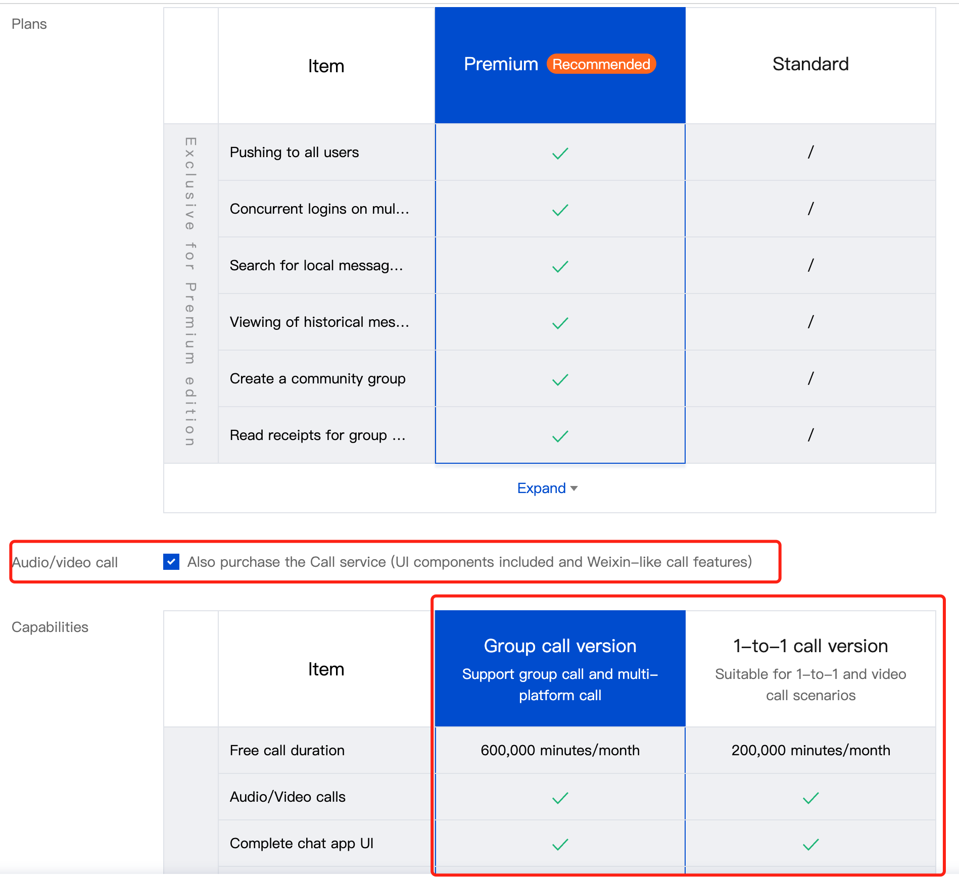 If your application is a pay-as-you-go Chat application, you can refer to the Purchase Guide to proceed with the purchase. If your application is a Prepaid Chat application, but not in the Chat Singapore Data Center, you can go to the Chat purchase page, select the corresponding data center and application within the page, then check "Audio/Video call", and choose the Call version to purchase.