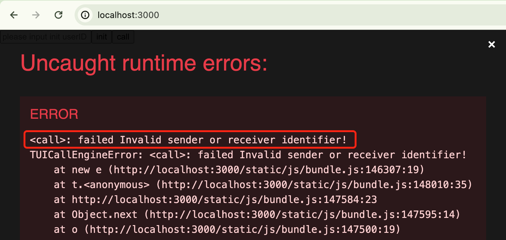 This error occurs because you did not fill in the SDKAppID information during TUICallKitServer.init/ GenerateTestUserSig.genTestUserSig npm install -g create-react-app error: errno -13?
