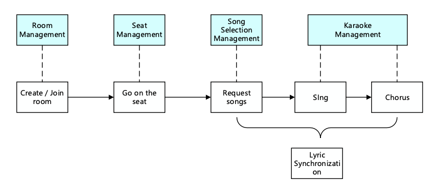 Room List | Go on/off the seat | Song List Display | Karaoke Play Mode |