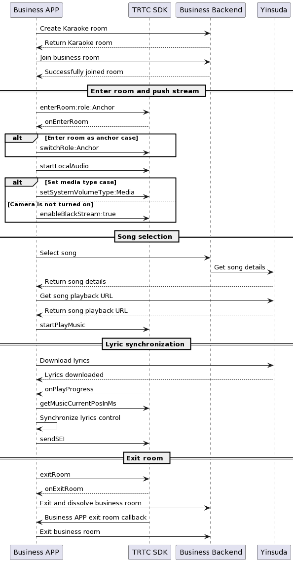 Room management is a necessary module for implementing online karaoke, but it is not the main functional module. The specific implementation can be combined with the business system and TRTC SDK, please refer to the voice chat room scene access solution for details.