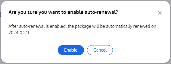 Refer to the Purchasing the official edition and purchase the same edition of the Conference monthly package again to complete the renewal. It is recommended that you renew Conference by enabling auto-renewal. When the account balance is sufficient, it will automatically renew monthly after expiration. The specific steps to enable auto-renewal in the console are as follows: