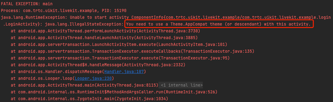 LoginActivity继承自AppCompatActivity,所以要给LoginActivity 设置一个Theme.AppCompat主题。AndroidManifest.xml文件中 LoginActivity的配置里,增加一个Theme.AppCompat主题。您也可以使用自己的Theme.AppCompat主题。修复示例如图所示: