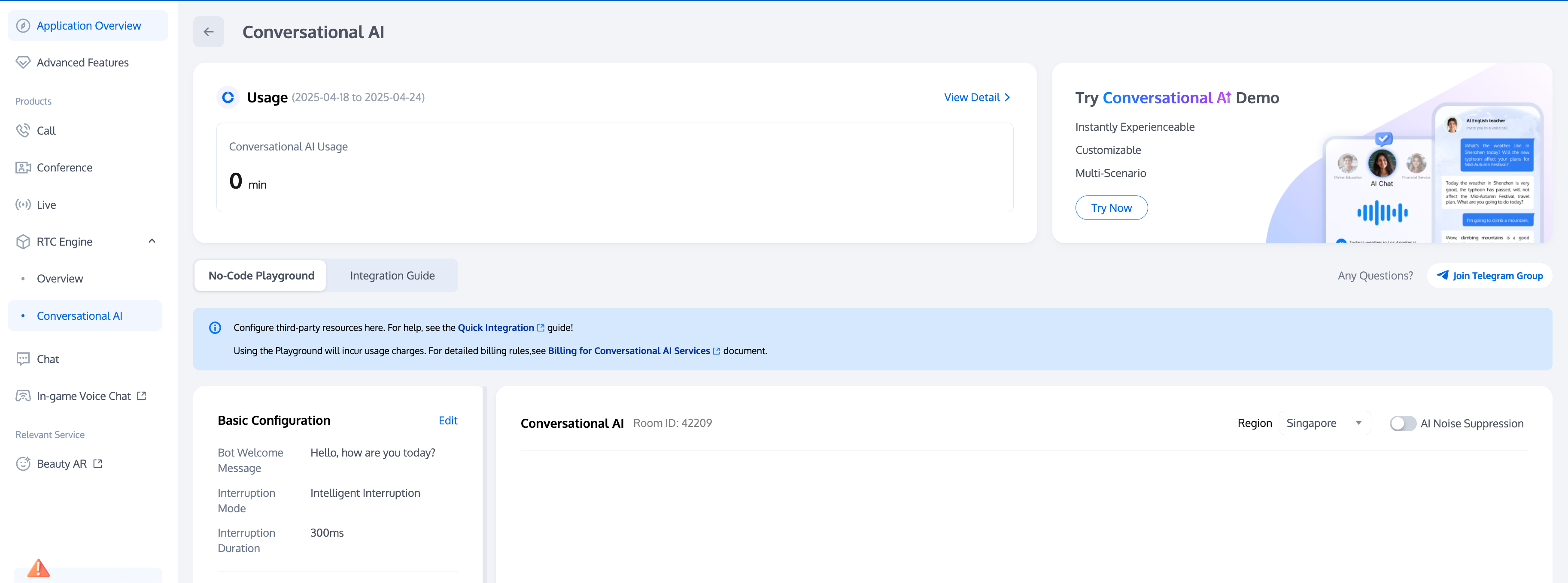 Click Try Demo to experience the capabilities of Conversational AI. Step 1: Basic Configuration