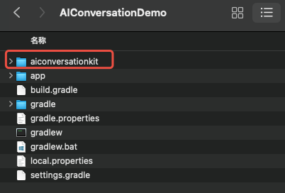 aiconversatonkit subdirectory under the Android directory to the same-level directory of the app in your current project, as shown in the figure below: