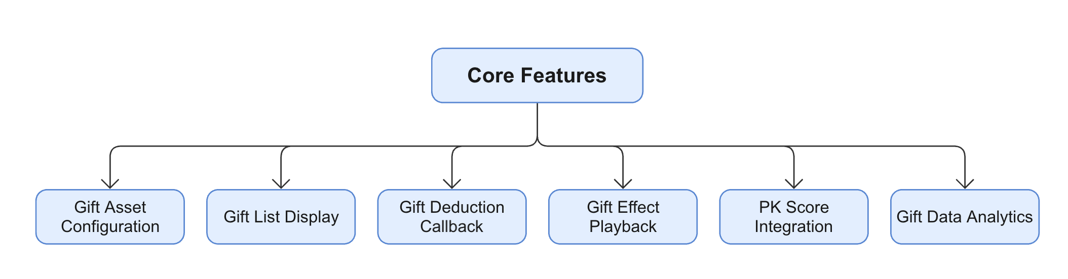 Gift Selection Panel Component (GiftListView) | Responsible for displaying the gift list, supports gift sending and gift categories, and adapts to multiple devices. |