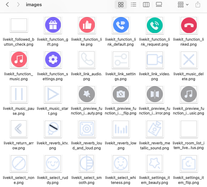 TUILiveKit/Flutter/livekit/assets/images folder to ensure the icon color and style remain consistent throughout the entire App. Please keep the icon file names unchanged during replacement.