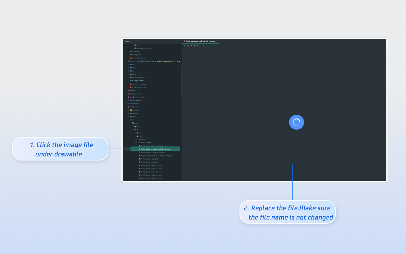 AnchorPrepareView component, completing the transition to the host streaming page. The specific example code is as follows:import android.os.Bundleimport androidx.appcompat.app.AppCompatActivityimport com.trtc.uikit.livekit.features.anchorprepare.AnchorPrepareViewimport com.trtc.uikit.livekit.features.anchorprepare.AnchorPrepareViewDefine.AnchorPrepareViewListenerclass YourActivity : AppCompatActivity() {override fun onCreate(savedInstanceState: Bundle?) {super.onCreate(savedInstanceState)val anchorPrepareView = AnchorPrepareView(this)anchorPrepareView.init("live_1236666", null)// 1. Add preview page click event listeninganchorPrepareView.addAnchorPrepareViewListener(object : AnchorPrepareViewListener {override fun onClickStartButton() {// Handle the click event, switch the page to your broadcaster stream page, see the initAnchorView method in procedure 4initAnchorView()}override fun onClickBackButton() {finish()}})// 2. Add AnchorPrepareView to the UIsetContentView(anchorPrepareView)}}