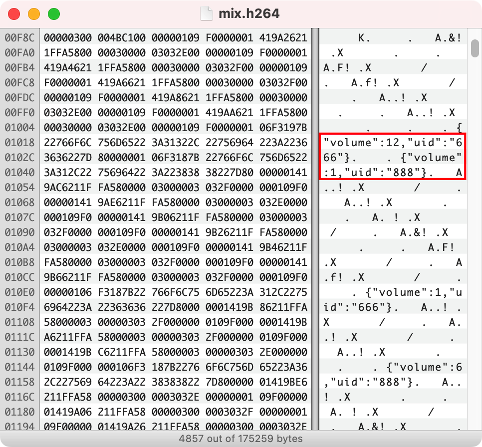 As shown below, the audience will see the volume levels of the respective speakers in the SEI messages parsed from the mixed stream.