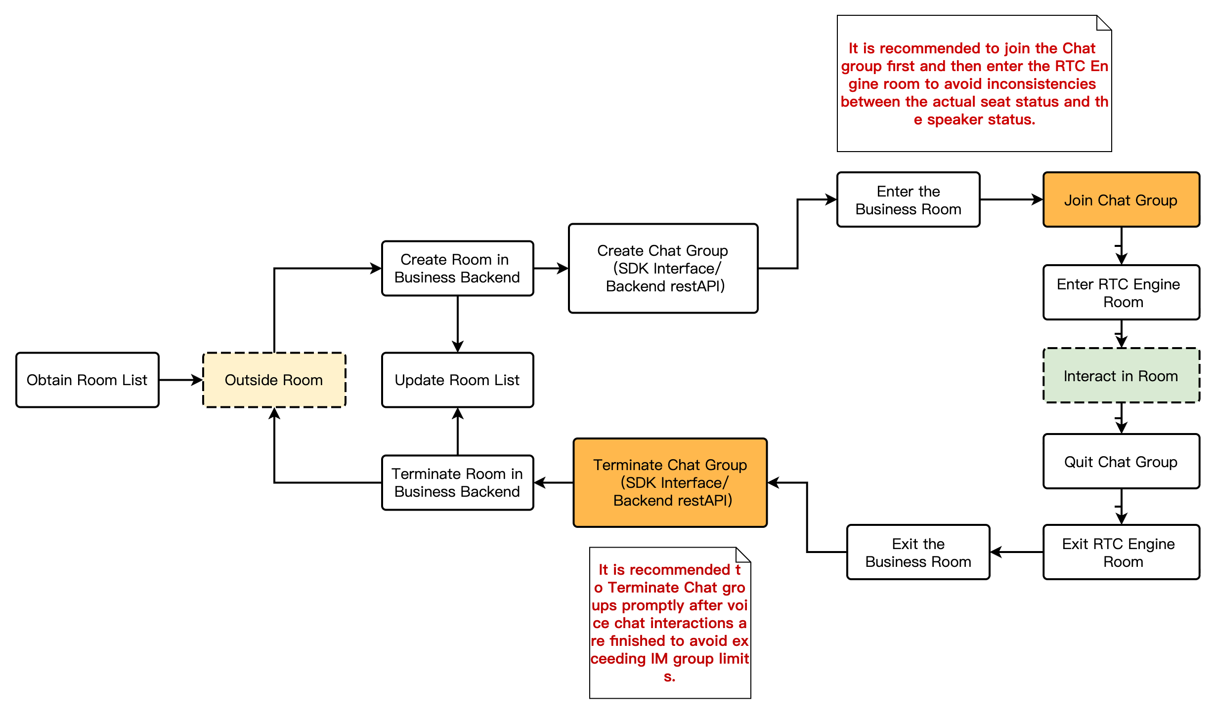 Room Management: Mainly used for the maintenance and administration of the room list, such as synchronizing the properties and status of rooms. Features include room list querying, entering/exiting rooms, and creating/terminateing rooms.