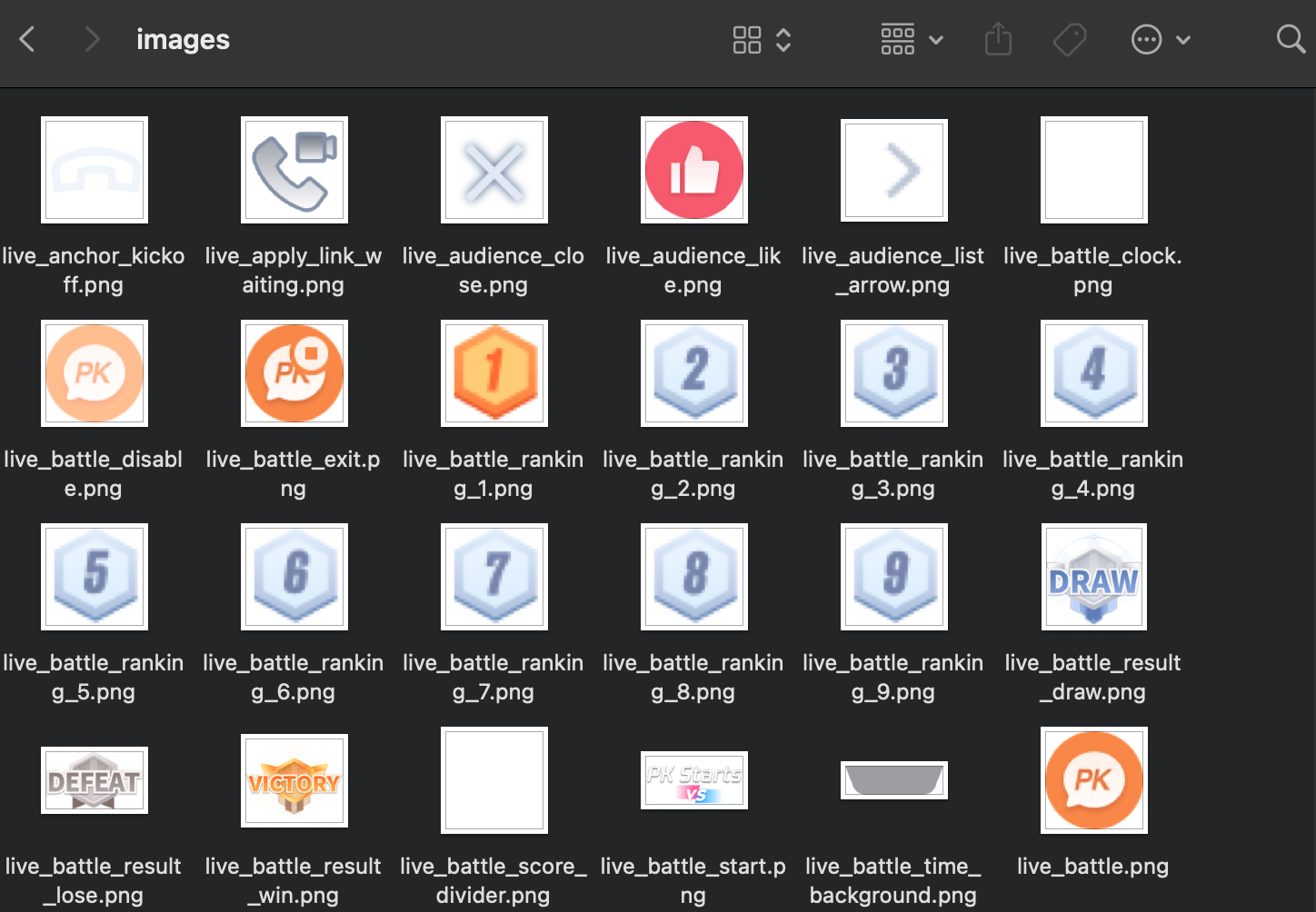 livekit_en.arb: English Text.livekit_zh.arb: Simplified Chinese Text.livekit_zh_Hant.arb: Traditional Chinese Text.flutter gen-l10n in the command line to regenerate the localization code.livekit/assets/images/ directory. To update icons, simply replace the PNG files in this folder.