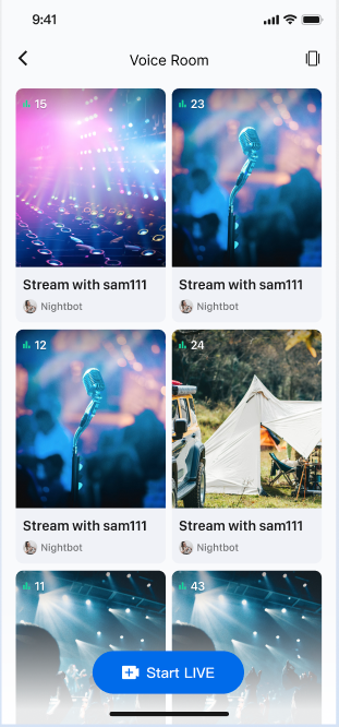 fun createLiveListView(context: Context): LiveListView {val liveListView = LiveListView(context)// Initialize with a double-column waterfall layoutliveListView.init(this, Style.DOUBLE_COLUMN)liveListView.setOnItemClickListener { view, liveInfo ->// Navigate to the audience watch page when a list item is clickedval intent = Intent(context, YourAudienceActivity::class.java)intent.putExtra("liveId", liveInfo.roomId)context.startActivity(intent)}return liveListView}