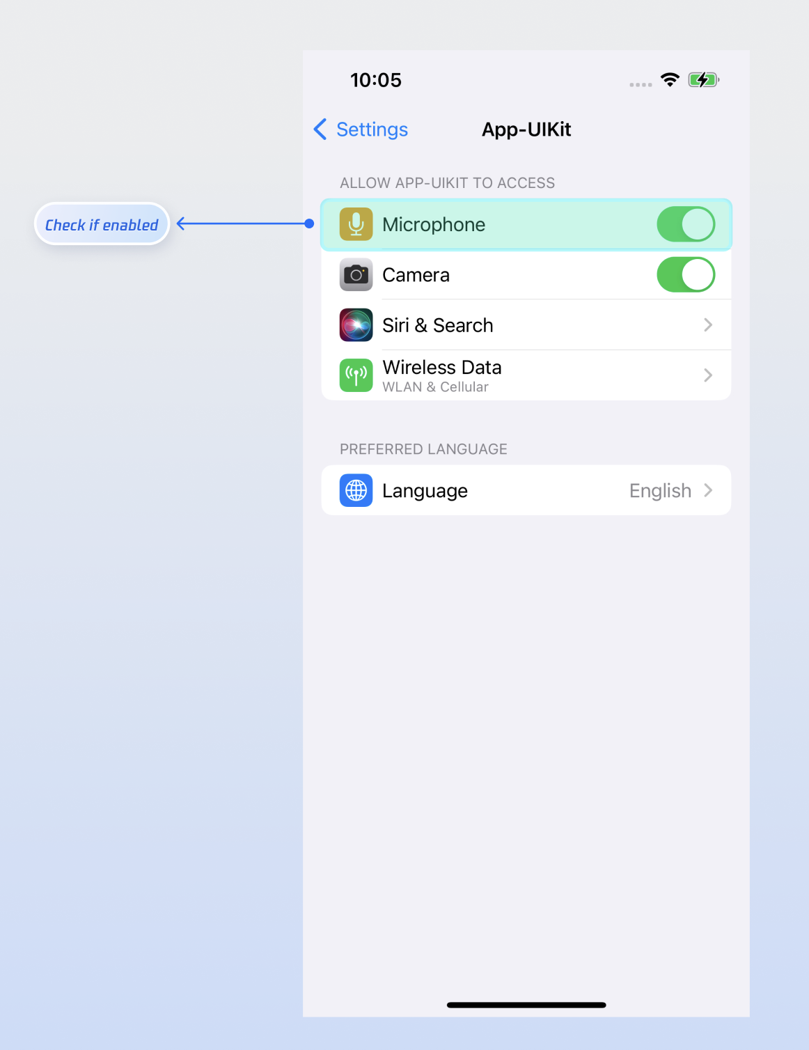 Settings > App > Microphone and ensure that microphone permissions are enabled.