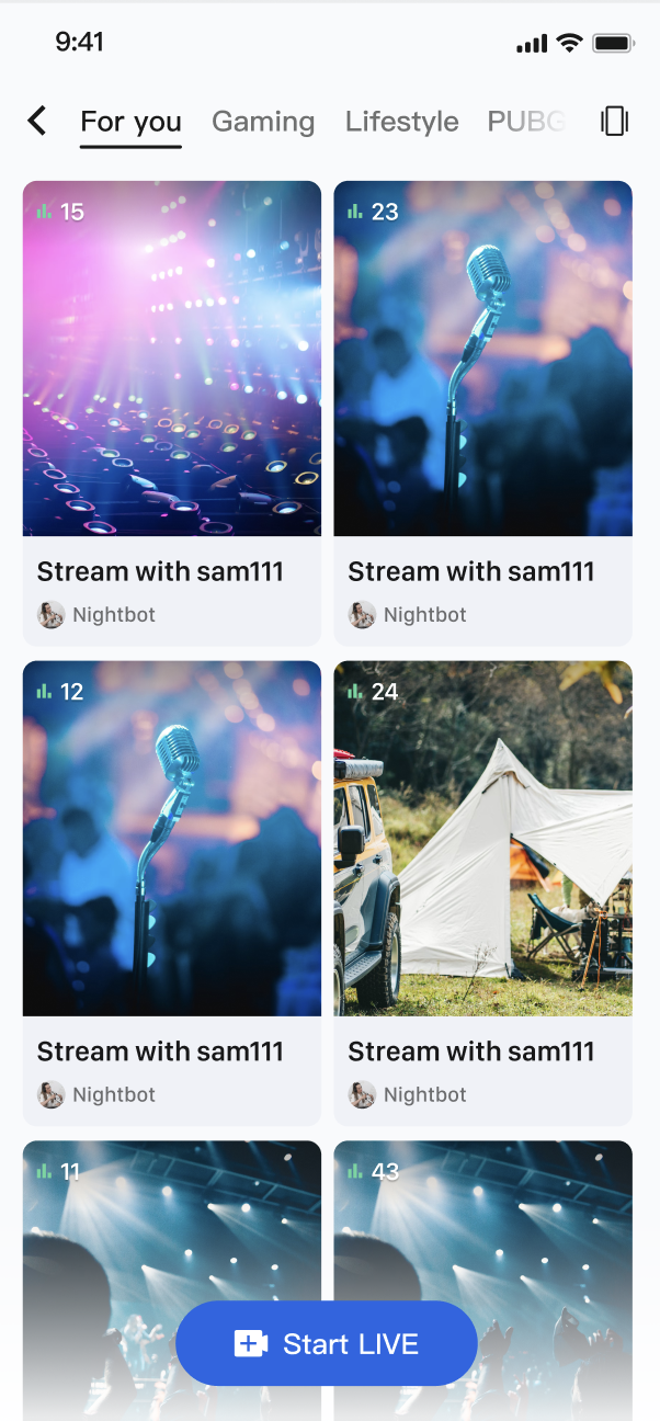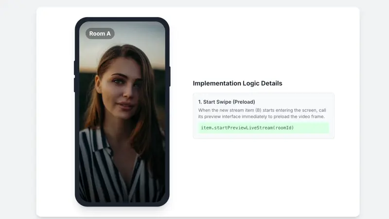 LiveCoreView supports multiple instances. Create a separate LiveCoreView for each RecyclerView.ViewHolder. By monitoring the scroll state of the RecyclerView, you can precisely control when to start or stop streaming in each ViewHolder, achieving "play on swipe in, stop on swipe out" behavior.LiveFeedViewHolder that holds a LiveCoreView internally. We then manage the playback state of these ViewHolders in the Activity.import android.os.Bundleimport android.view.LayoutInflaterimport android.view.Viewimport android.view.ViewGroupimport androidx.appcompat.app.AppCompatActivityimport androidx.recyclerview.widget.LinearLayoutManagerimport androidx.recyclerview.widget.RecyclerViewimport io.trtc.tuikit.atomicxcore.api.live.LiveInfoimport io.trtc.tuikit.atomicxcore.api.view.CoreViewTypeimport io.trtc.tuikit.atomicxcore.api.view.LiveCoreView// 1. Custom RecyclerView.ViewHolder, containing a LiveCoreView internallyclass LiveFeedViewHolder(itemView: View) : RecyclerView.ViewHolder(itemView) {private var liveCoreView: LiveCoreView? = nullfun setLiveInfo(liveInfo: LiveInfo) {// Create a new LiveCoreView for the new live infoliveCoreView = LiveCoreView(itemView.context, viewType = CoreViewType.PLAY_VIEW)liveCoreView?.let { view ->(itemView as ViewGroup).addView(view)view.layoutParams = ViewGroup.LayoutParams(ViewGroup.LayoutParams.MATCH_PARENT,ViewGroup.LayoutParams.MATCH_PARENT)}}fun startPlay(roomId: String) {liveCoreView?.startPreviewLiveStream(roomId, false, callback = null)}fun stopPlay(roomId: String) {liveCoreView?.stopPreviewLiveStream(roomId)}}// 2. Manage playback logic in the Activityclass LiveFeedActivity : AppCompatActivity() {private lateinit var recyclerView: RecyclerViewprivate var liveList: List<LiveInfo> = emptyList()private var currentPlayingPosition: Int = -1override fun onCreate(savedInstanceState: Bundle?) {super.onCreate(savedInstanceState)setContentView(R.layout.activity_live_feed)setupRecyclerView()}private fun setupRecyclerView() {recyclerView = findViewById(R.id.recyclerView)recyclerView.layoutManager = LinearLayoutManager(this, LinearLayoutManager.VERTICAL, false)recyclerView.adapter = LiveFeedAdapter(liveList) { position ->playVideoAtPosition(position)}// Listen for scroll staterecyclerView.addOnScrollListener(object : RecyclerView.OnScrollListener() {override fun onScrollStateChanged(recyclerView: RecyclerView, newState: Int) {super.onScrollStateChanged(recyclerView, newState)if (newState == RecyclerView.SCROLL_STATE_IDLE) {val layoutManager = recyclerView.layoutManager as LinearLayoutManagerval firstVisiblePosition = layoutManager.findFirstCompletelyVisibleItemPosition()if (firstVisiblePosition != RecyclerView.NO_POSITION) {playVideoAtPosition(firstVisiblePosition)}}}})}private fun playVideoAtPosition(position: Int) {// Only switch playback when the centered position changesif (currentPlayingPosition != position) {// Stop current playbackif (currentPlayingPosition != -1) {val currentViewHolder = recyclerView.findViewHolderForAdapterPosition(currentPlayingPosition)if (currentViewHolder is LiveFeedViewHolder) {val liveInfo = liveList[currentPlayingPosition]currentViewHolder.stopPlay(liveInfo.liveID)}}// Start new playbackval newViewHolder = recyclerView.findViewHolderForAdapterPosition(position)if (newViewHolder is LiveFeedViewHolder) {val liveInfo = liveList[position]newViewHolder.startPlay(liveInfo.liveID)currentPlayingPosition = position}}}// RecyclerView Adapterinner class LiveFeedAdapter(private var liveList: List<LiveInfo>,private val onItemClick: (Int) -> Unit) : RecyclerView.Adapter<LiveFeedViewHolder>() {override fun onCreateViewHolder(parent: ViewGroup, viewType: Int): LiveFeedViewHolder {val view = LayoutInflater.from(parent.context).inflate(R.layout.item_live_feed, parent, false)return LiveFeedViewHolder(view)}override fun onBindViewHolder(holder: LiveFeedViewHolder, position: Int) {val liveInfo = liveList[position]holder.setLiveInfo(liveInfo)holder.itemView.setOnClickListener {onItemClick(position)}}override fun getItemCount(): Int = liveList.size}}
