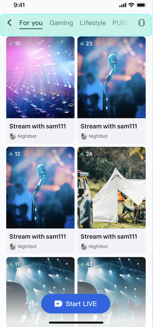 categoryList property in the LiveInfo model. When the host selects a category while going live, the fetchLiveList API returns LiveInfo objects that include these category details. After retrieving the full live room list, filter it on the client based on the user’s selected category and refresh the UI.LiveListManager within LiveListActivity to handle data retrieval and filtering logic.import android.os.Bundleimport androidx.appcompat.app.AppCompatActivityimport androidx.recyclerview.widget.RecyclerViewimport io.trtc.tuikit.atomicxcore.api.live.LiveInfoimport io.trtc.tuikit.atomicxcore.api.live.LiveListStoreimport kotlinx.coroutines.*import kotlinx.coroutines.flow.*// 1. Create a data manager to encapsulate data retrieval and filtering logicclass LiveListManager {private val liveListStore = LiveListStore.shared()private var fullLiveList: List<LiveInfo> = emptyList()// Expose the final filtered live list externallyprivate val _filteredLiveList = MutableStateFlow<List<LiveInfo>>(emptyList())val filteredLiveList: StateFlow<List<LiveInfo>> = _filteredLiveListinit {// Listen for full list changesCoroutineScope(Dispatchers.Main).launch {liveListStore.liveState.liveList.collect { fetchedList ->fullLiveList = fetchedList// By default, publish the complete list_filteredLiveList.value = fetchedList}}}fun fetchFirstPage() {liveListStore.fetchLiveList(cursor = "", count = 20, completion = null)}/// Filter the live list by categoryfun filterLiveList(categoryId: Int?) {if (categoryId == null) {// If categoryId is null, show the complete list_filteredLiveList.value = fullLiveListreturn}val filteredList = fullLiveList.filter { liveInfo ->liveInfo.categoryList.contains(categoryId)}_filteredLiveList.value = filteredList}}// 2. Use the Manager in your LiveListActivityclass LiveListActivity : AppCompatActivity() {private val manager = LiveListManager()private lateinit var recyclerView: RecyclerViewoverride fun onCreate(savedInstanceState: Bundle?) {super.onCreate(savedInstanceState)setContentView(R.layout.activity_live_list)// setupUI()// Bind dataCoroutineScope(Dispatchers.Main).launch {manager.filteredLiveList.collect { filteredList ->// Refresh UI// adapter.updateList(filteredList)}}// Fetch first pagemanager.fetchFirstPage()}// When the user clicks a top category tagfun onCategorySelected(categoryId: Int) {manager.filterLiveList(categoryId)}// ... (RecyclerView related code)}