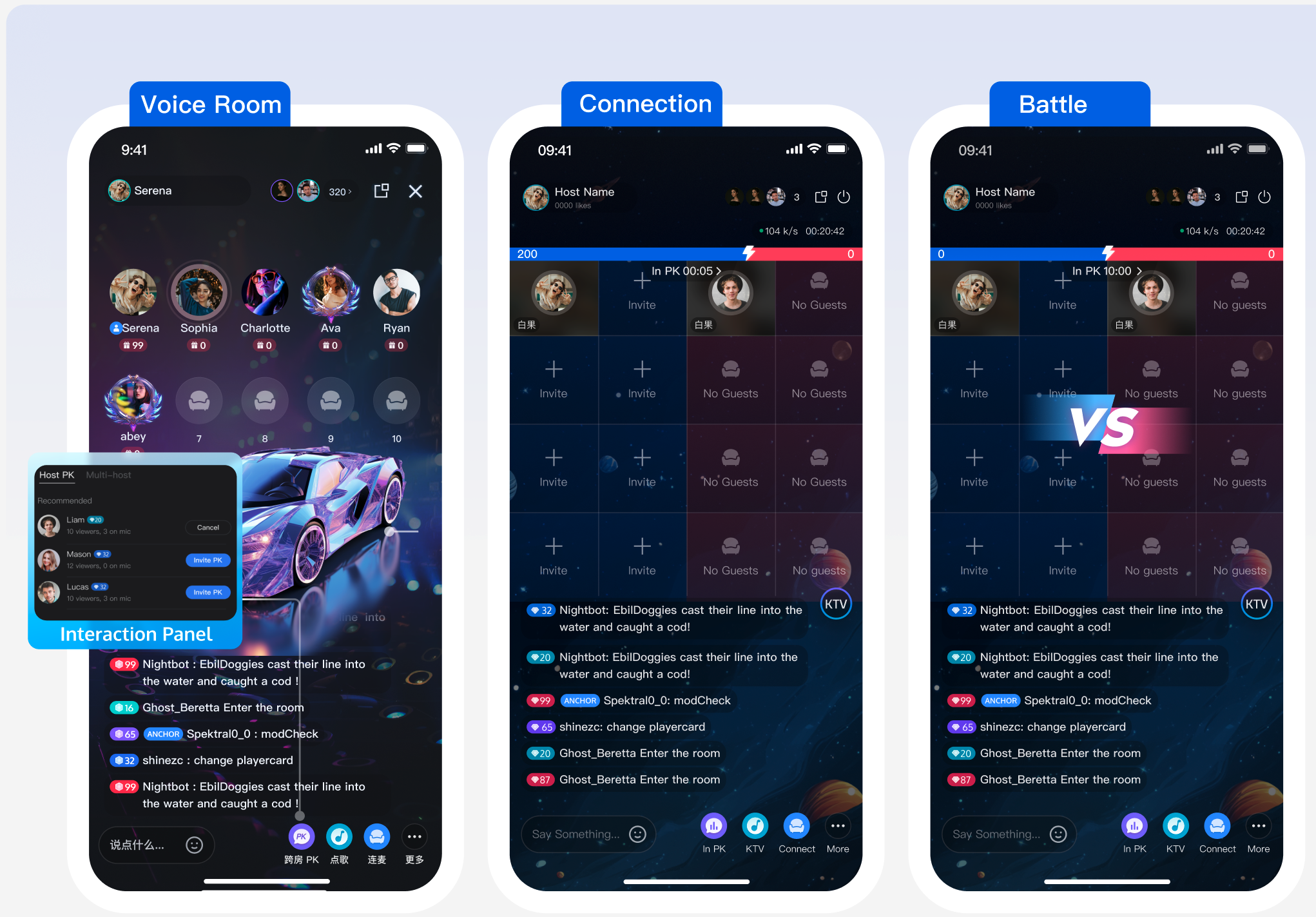 AtomicXCore provides two core modules: CoHostStore for cross-room connections and BattleStore for PK battles. This guide explains how to integrate these modules to enable connection and PK features in a voice chat room application.