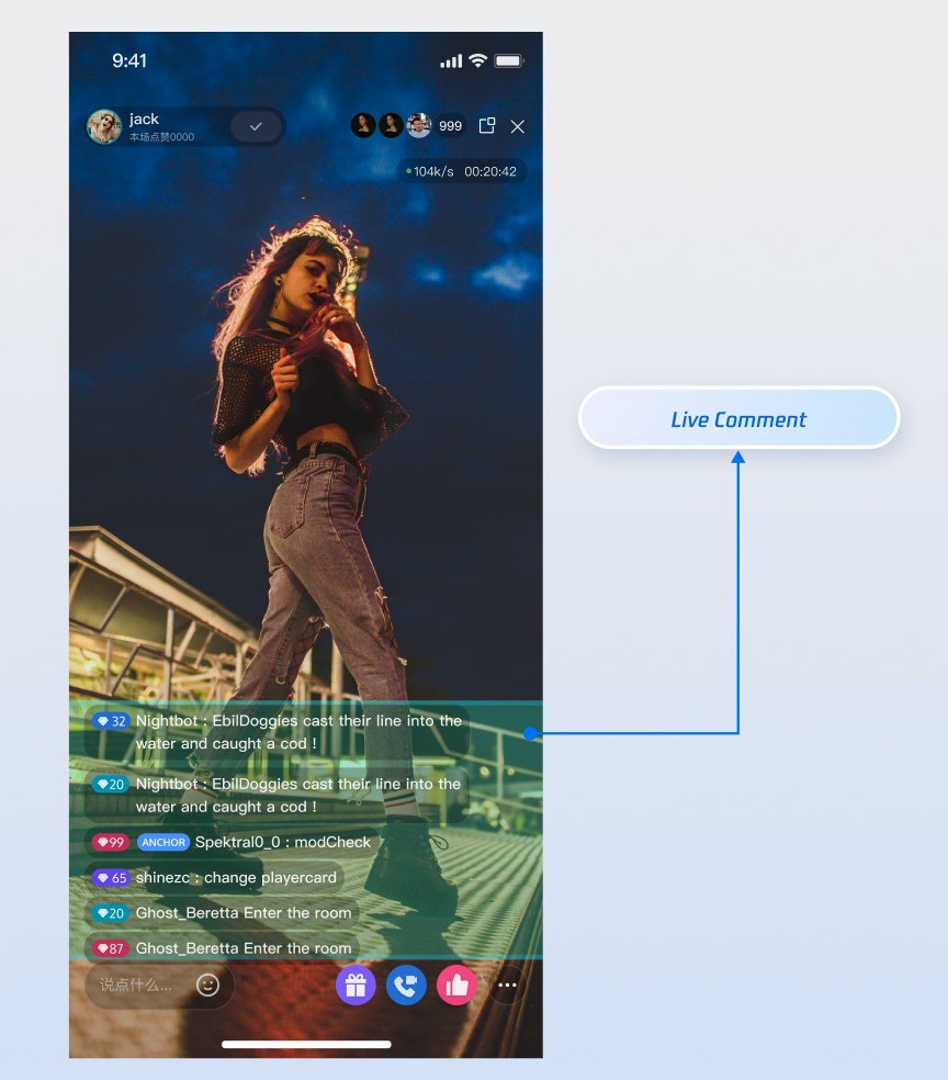 Sending custom live comments to support advanced scenarios such as gifts, likes, and more.