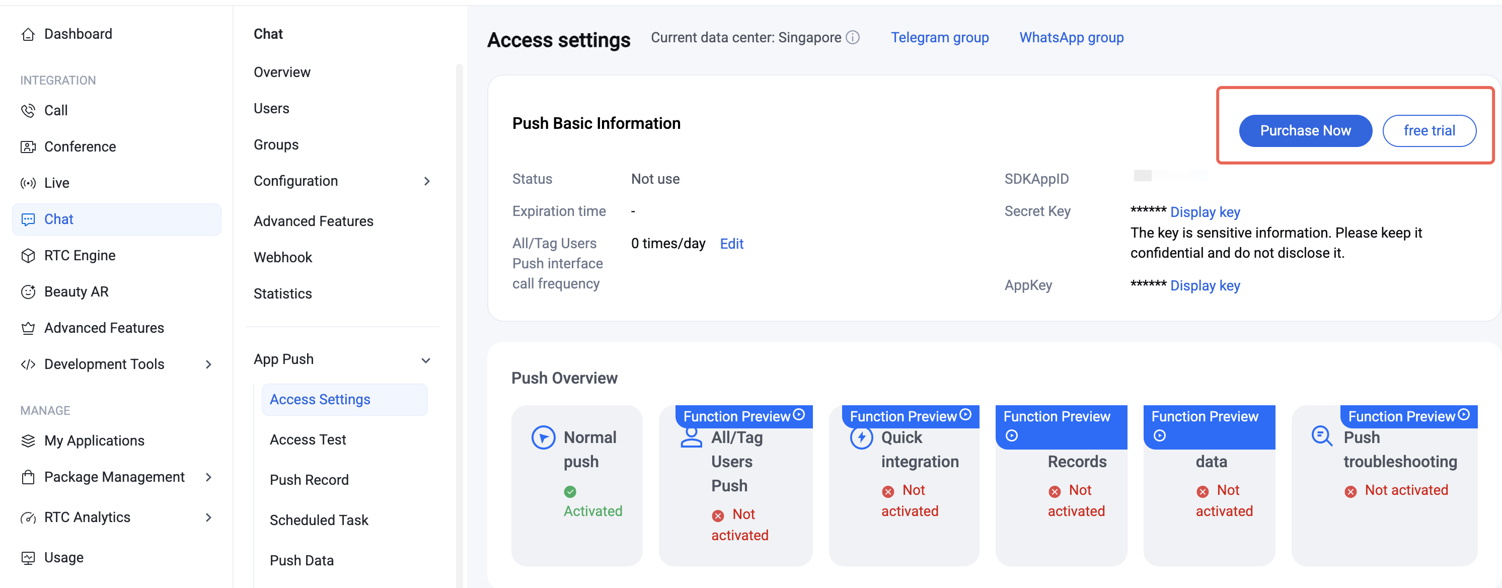 After the push plugin trial or purchase expires, push services (including offline push for standard messages, broadcast/tag push, etc.) will be automatically disabled. To avoid business interruption, please purchase or renew the service in advance. Integration Recommendations