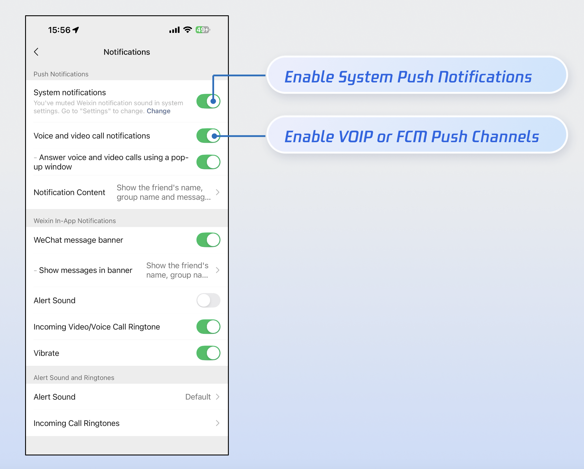 From our experience, over 90% of users miss call notifications because they manually disable app notification permissions. To maximize call notification reach, we recommend: