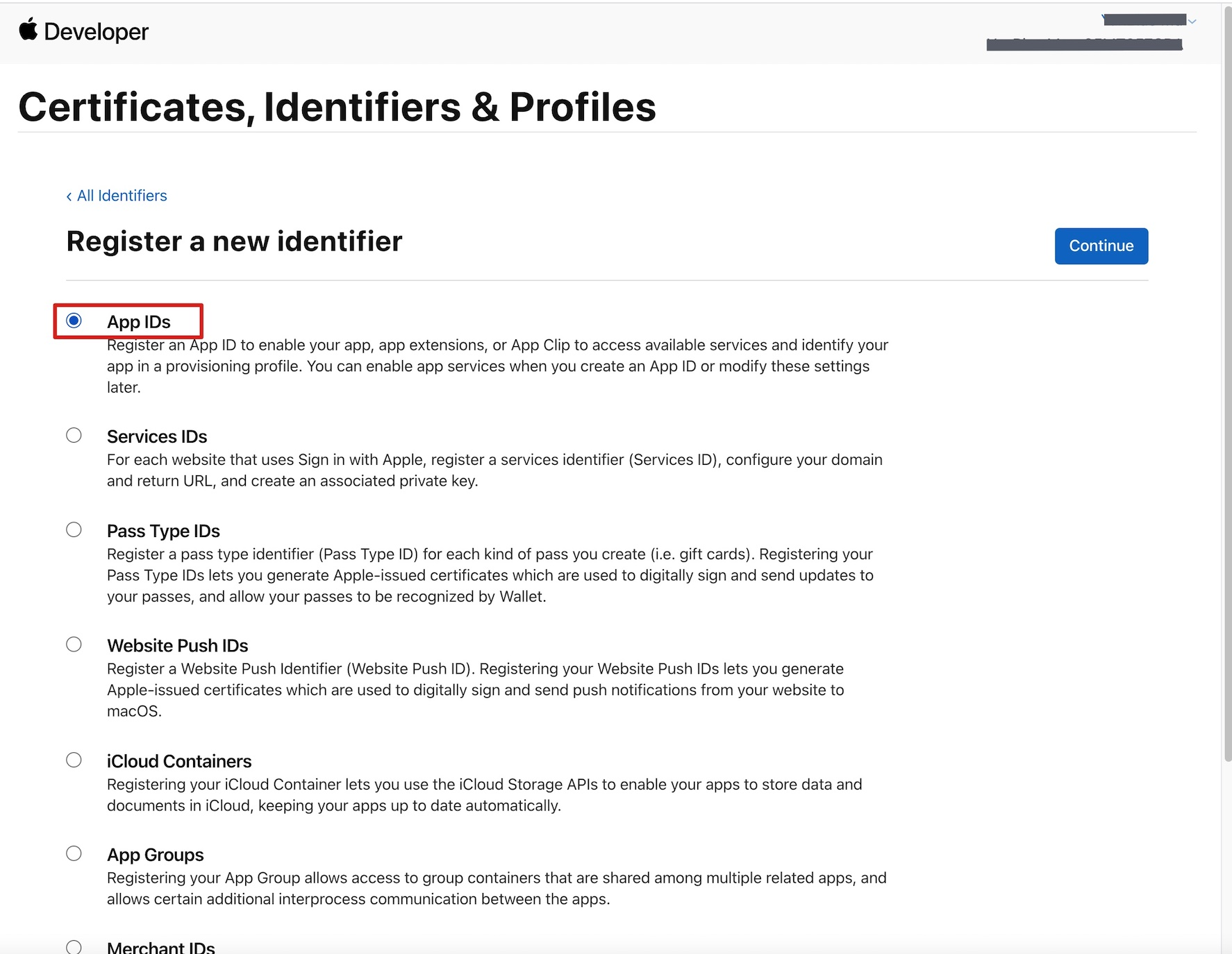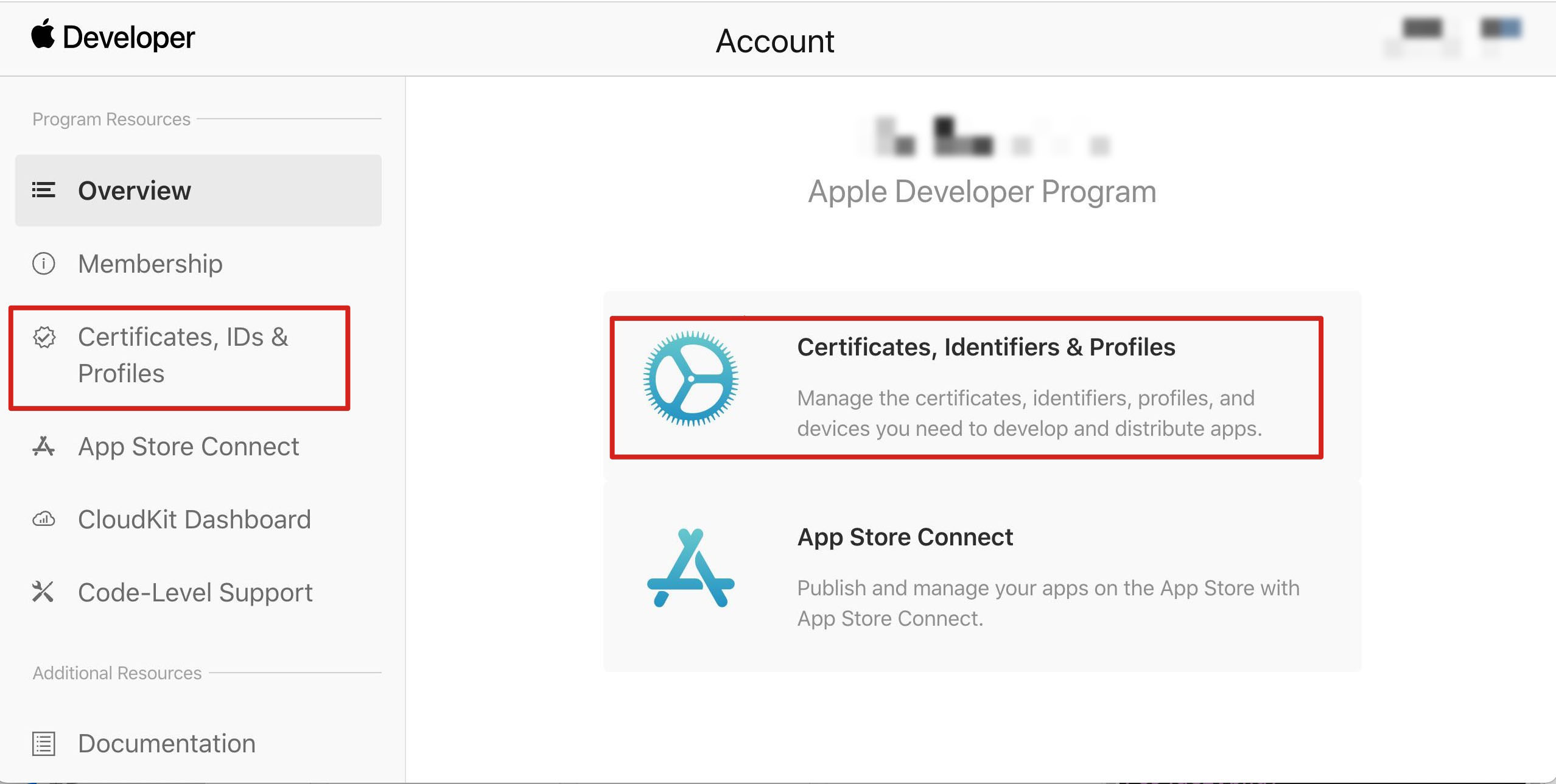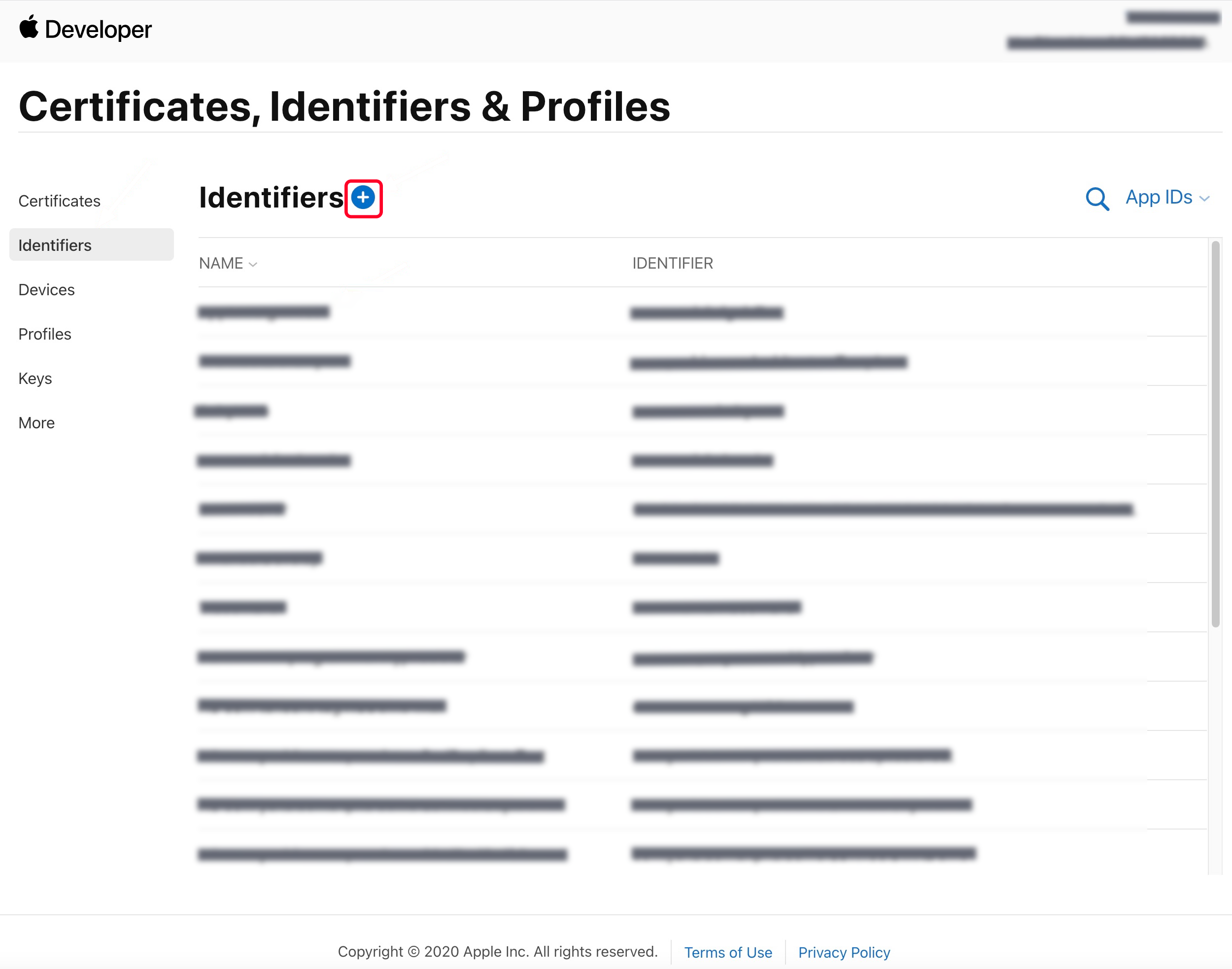1. Log in to the Apple Developer Center, click Certificates, Identifiers & Profiles or use the sidebar to access the Certificates, IDs & Profiles page. 2. Click the + button next to Identifiers.