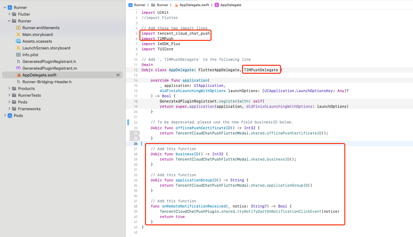 @objc class AppDelegate: FlutterAppDelegate, TIMPushDelegate {