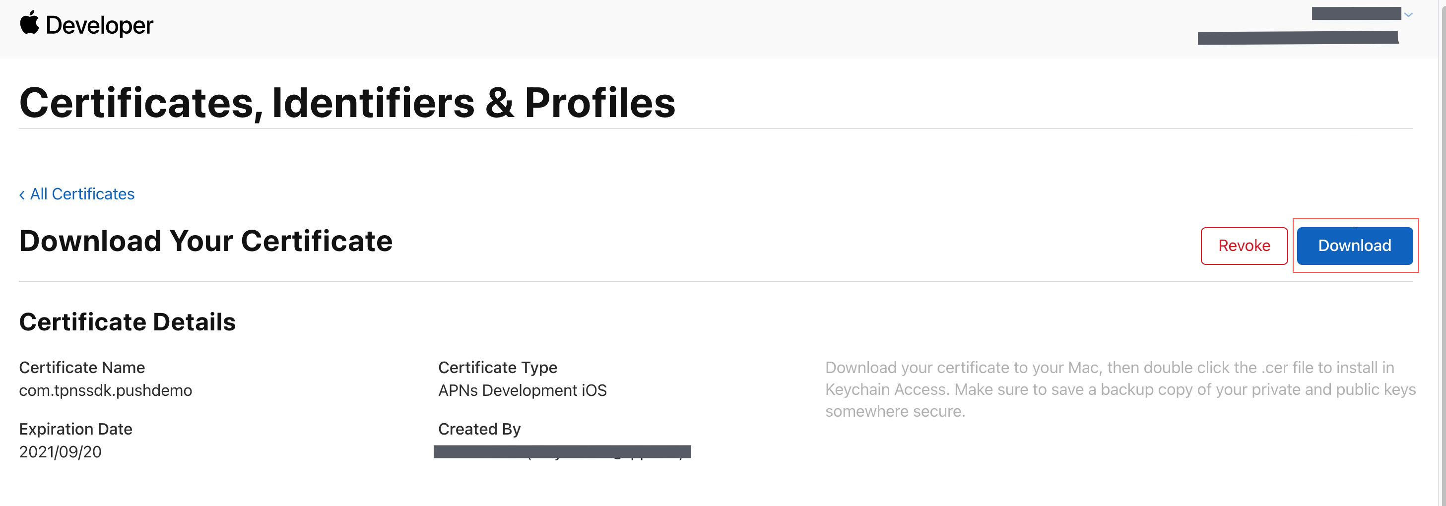 9. Repeat steps 1–8 to download the Production SSL Certificate.