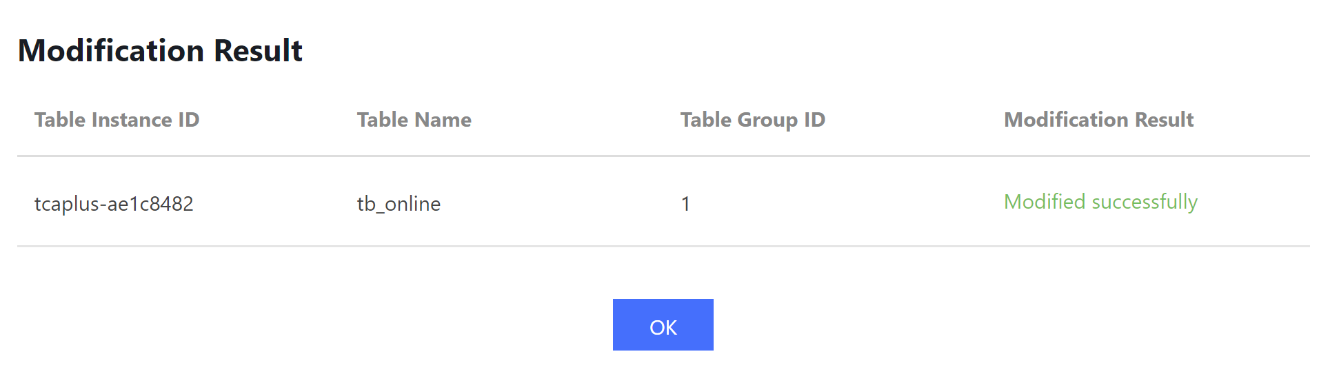 5. Setelah mengonfirmasi bahwa semuanya sudah benar, klik Confirm (Konfirmasi) untuk mengirimkan permintaan Anda untuk memodifikasi tabel, dan perintah akan ditampilkan jika modifikasi berhasil.