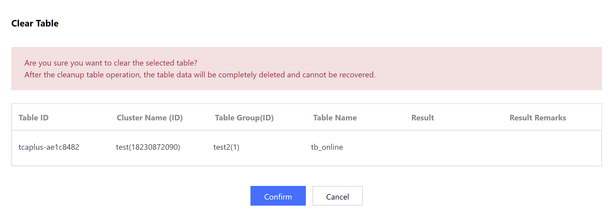 2. Di kotak dialog "Clear" (Hapus) yang muncul, klik Confirm (Konfirmasi) untuk menghapus tabel.